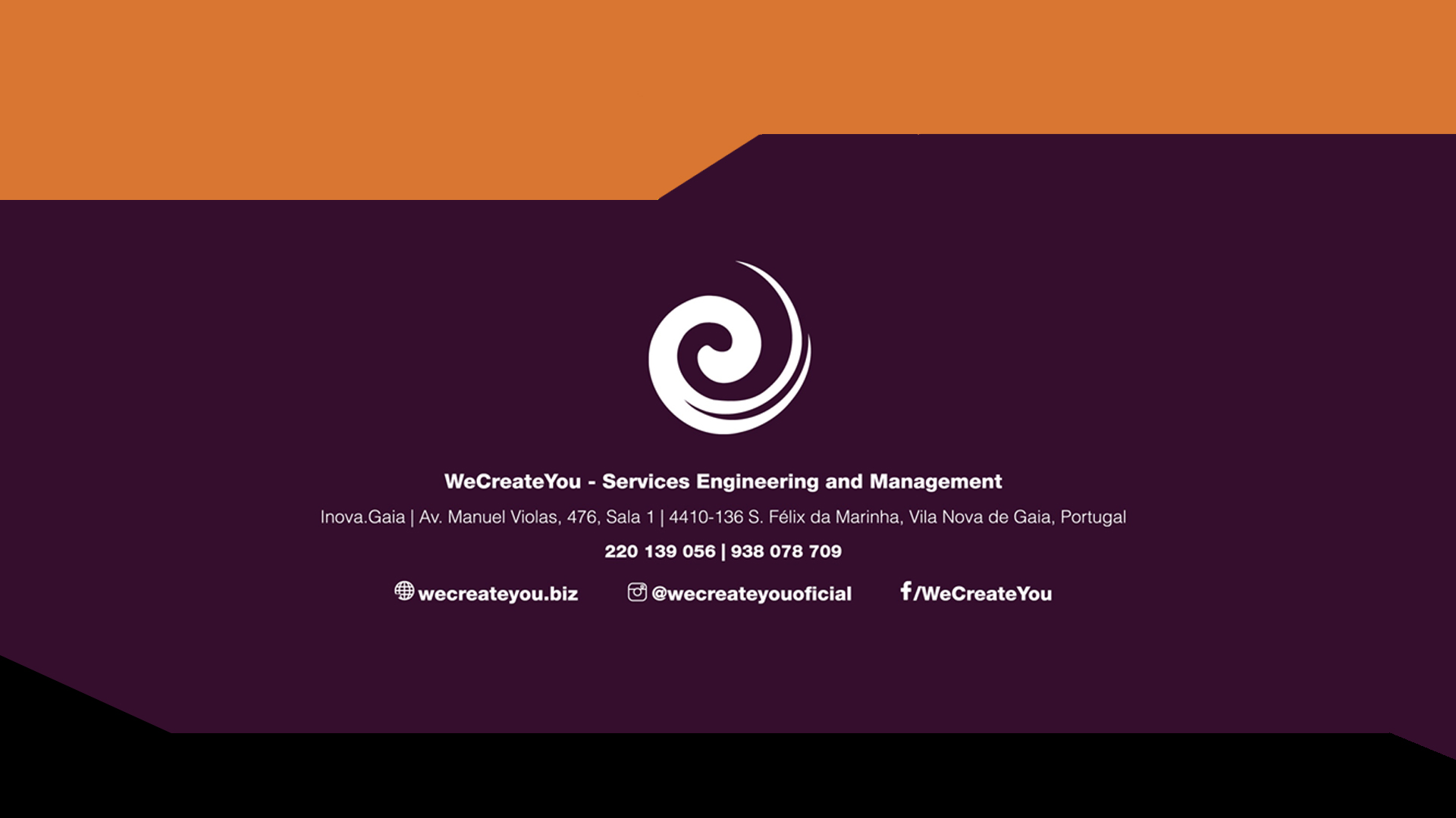 A WeCreateYou é uma empresa de serviços, engenharia e gestão, focada na criação de soluções disruptivas e inovadoras com base tecnológica.